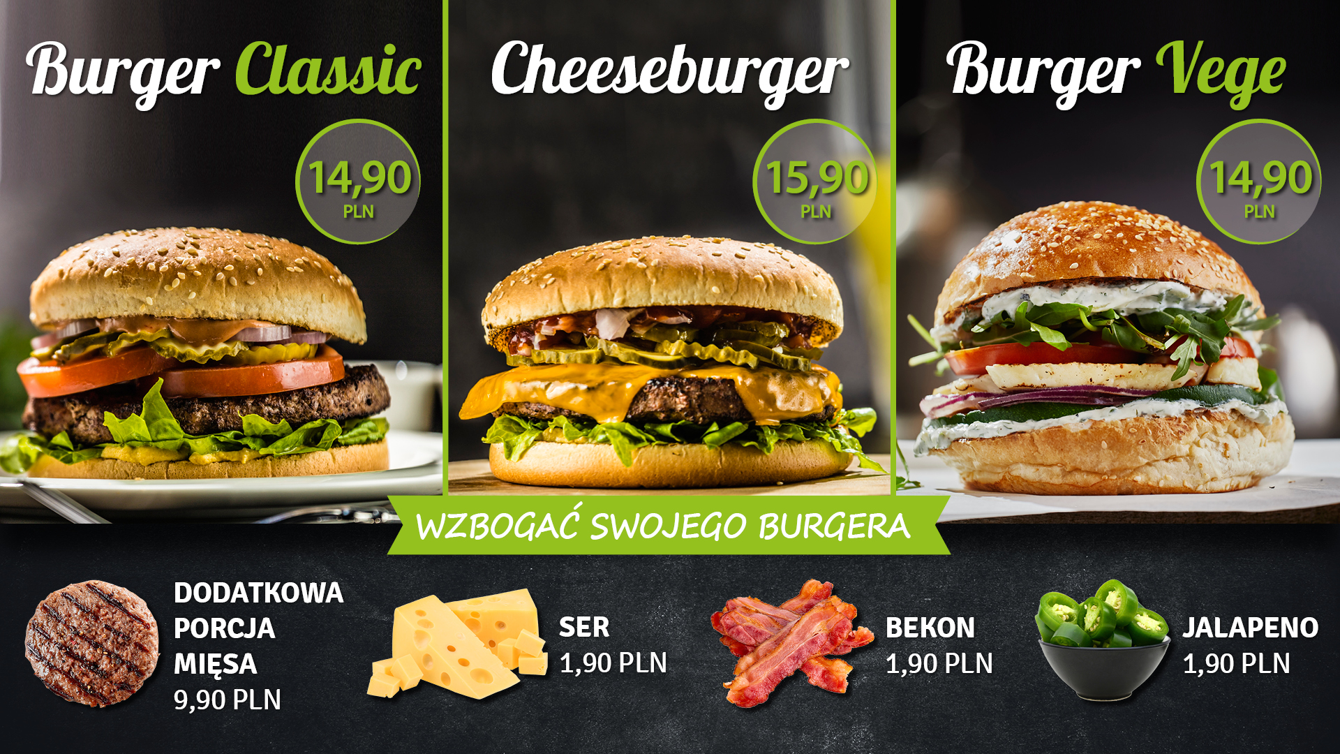 BURGERY DOSTĘPNE W MENU- CODZIENNIE*